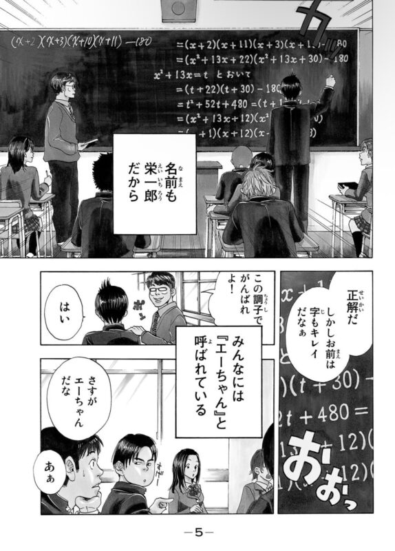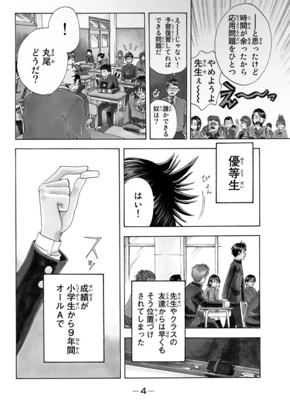 主人公の丸尾栄一郎は、勉強が得意で常にオールA。