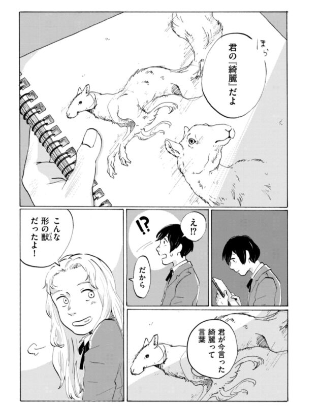 言葉を<獣>の姿で見ることができる共感覚の持ち主・東雲と、詩に強い関心を持つクラスメイト・やっけん。二人はふとしたきっかけから、東雲の持つ“ある目的”の為に協力し合うことに。